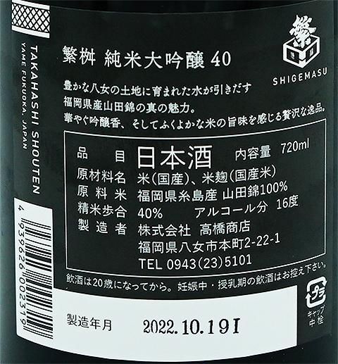 契約栽培の「山田錦」を100%使用して仕込まれた純米大吟醸酒です。低温発酵させモロミを詰めた酒袋を積み重ねた槽(ふね)で搾った贅沢な造りです。軽やかな口当たりがゆえに、女性や日本酒初心者にも好まれるソフトなタイプの日本酒です。